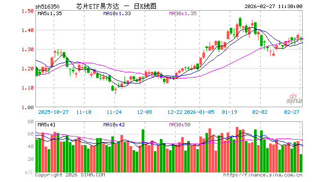 芯片ETF易方达(516350)跌1.61%,半日成交额3729.98万元