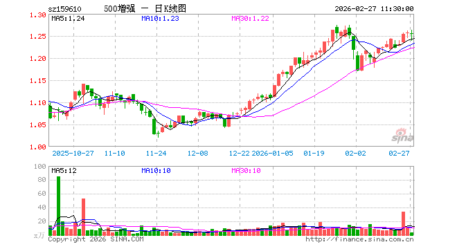 500ETF增强(159610)跌0.16%,半日成交额380.91万元