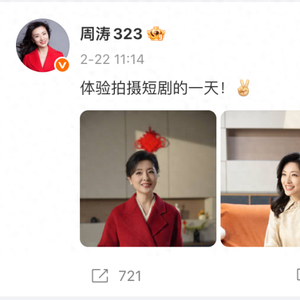 近日,前央视主持人周涛更新社交媒体称:“体验拍摄短剧的一天!”她在视频中表示,第一次拍短剧很好玩,创作过程中自己的状态很轻松。