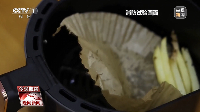 实验结果表明,空气炸锅工作时温度可达到上百摄氏度。如果食物放置太少或是不均匀,垫纸极易被点燃,引发安全隐患。