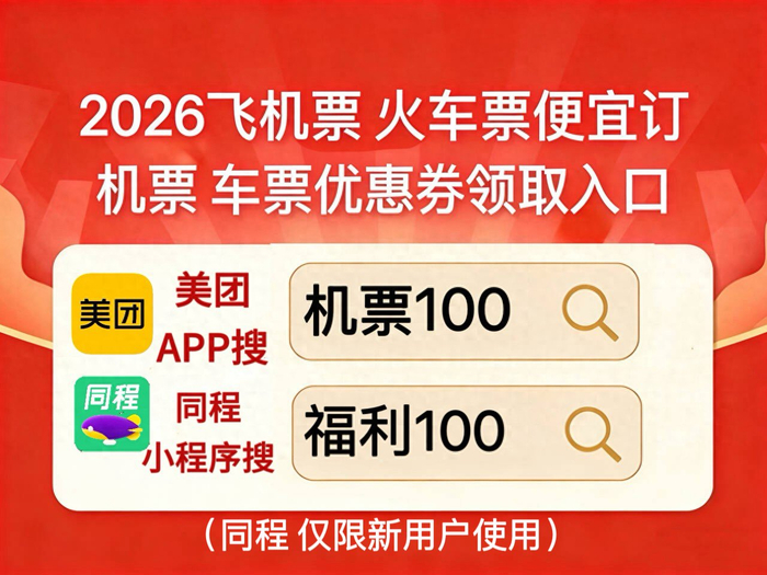 打开美团app搜【机票100】,领百元机票券包,含无门槛、满减券,国内主流航司通用,下单自动抵扣;美团app搜【车票100】可领火车票/高铁票优惠券。