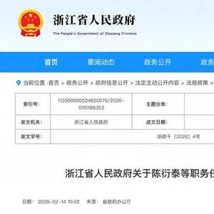 2月14日,浙江省政府官网发布《浙江省人民政府关于陈衍泰等职务任免的通知》。其中涉及浙江财经大学、浙大宁波理工学院、温州理工学院、湖州学院、浙江警官职业学院、浙江经贸职业技术学院、浙江体育职业技术学院、宁波幼儿师范高等专科学校、义乌工商职业技术学院等多所高校校长任免。