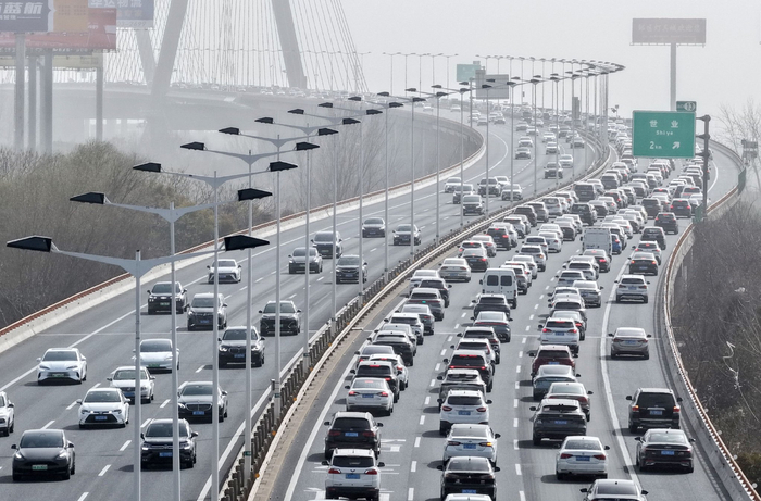 交通运输部数据显示,节日期间,公路自驾出行需求充分释放,日均自驾出行规模近2.7亿人次,同比增长8.3%,占出行总量的86%。从纳入国家充电设施监测服务平台的5.33万台高速公路充电桩的统计来看,自2月15日至2月23日,高速公路电动汽车充电次数共计602.1万次,充电量达到14976.75万千瓦时,日均充电量1664.08万千瓦时,较去年春节日均增长52.01%,创历史新高。随着充电服务保障越来越好,越来越多人选择新能源车自驾出行。节日期间,全国高速公路日均通行新能源车辆1152万辆,同比增长34%。此外,小微型客车租赁成为交通消费场景新的增长点,日均租赁车辆约65万辆,同比增长15%。 2026年2月22日,江苏省扬州市境内的润扬大桥上的车流(无人机照片)。新华社发(孟德龙摄)