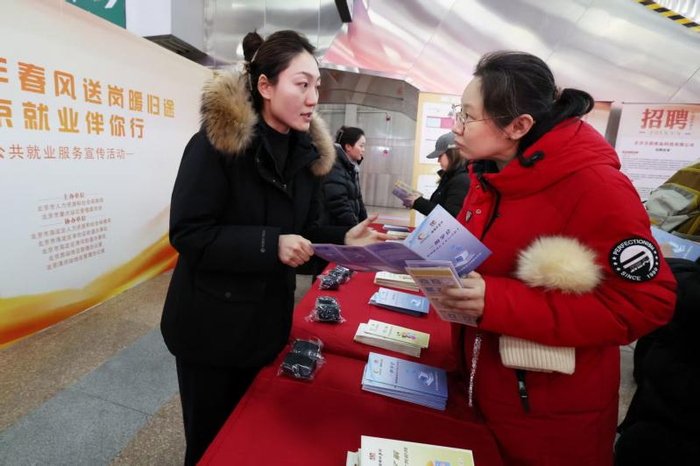 2月27日,北京市人社局联合市重点站区管委会启动“春风送岗暖归途 北京就业伴你行”公共就业服务活动。东城、西城、朝阳、海淀、丰台、通州、顺义、大兴8区人社部门,同步进驻北京站、北京朝阳站、北京西站等八大火车站以及首都、大兴两大机场,携10万余个岗位,在“出站口”直接送达进京求职者。求职者可通过北京市人社局官方网站、京通小程序中查找“就业在北京”就业服务平台,一键查找心仪岗位,实现刚下“返京列车”,就上“就业快车”。