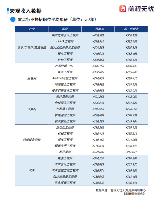 高科技与集成电路成为薪酬高地