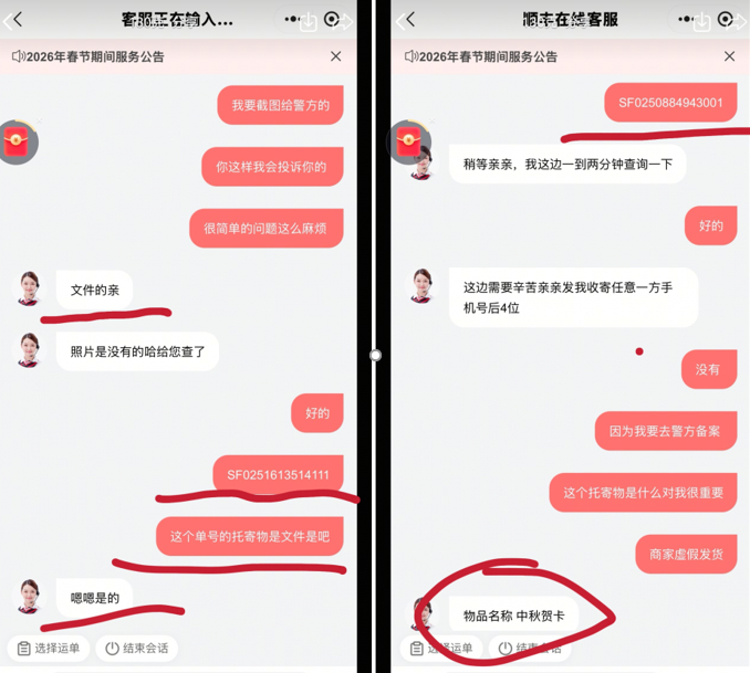 采访中,袁女士向人民网记者出示的订单记录显示:物流状态自去年10月起便停滞在“进入质检环节”,商家失联,抖音平台仅提出“退款并补偿100元”。她尝试联系快递公司核实,发现商家寄往所谓“质检基地”的竟是一份文件,与黄金重量完全不符。