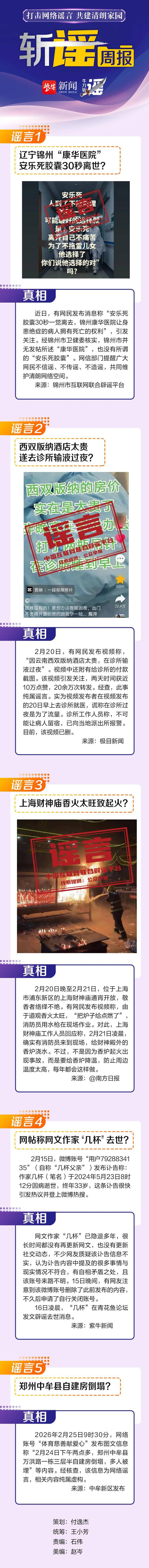 斩谣周报 | 锦州“康华医院”安乐死胶囊30秒离世?西双版纳酒店太贵遂去诊所输液过夜?谣言!
