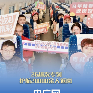 据悉,2026年春节后,贵州铁路计划开行务工专列26趟次,预计助力全省2万多名劳动者顺利返岗复工,让每一名劳动者都能平安、及时地抵达奋斗的远方。
