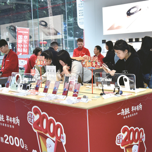 市民在民族大道一家电卖场选购手机等数码产品。 本报记者刘增璇 摄