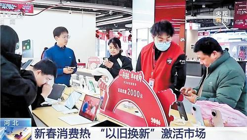 2月25日,央视新闻频道《河北:新春消费热 “以旧换新”激活市场》报道截图。
