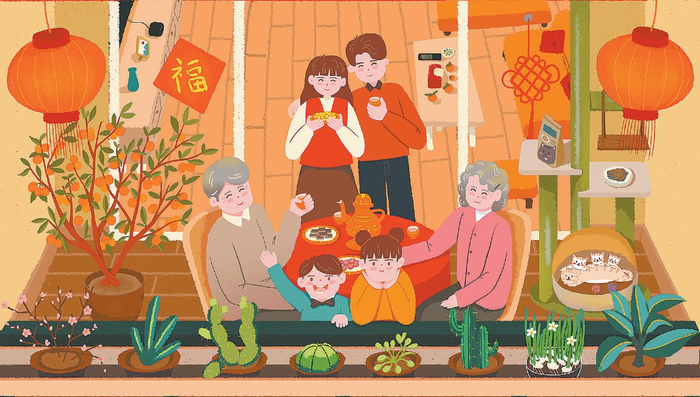 我家的春节,正是融合了京津两地风情。既有北京庙会的雅致意趣,也有天津吊钱儿的热闹鲜活;既煮着一锅京味肉馅饺子,也蒸着一笼天津的花样面点。大年初一,换上新衣去拜年:先向北京的长辈躬身行礼,再和天津的亲友视频道贺。红包里的祝福,从来不分南北、无问远近。北京的胡同与天津的海河同沐一片春光——千家万户的灯火里,藏着从未改变的团圆期盼,淌着岁岁传承的文化根脉,也让这春日的暖意格外绵长,格外温暖。