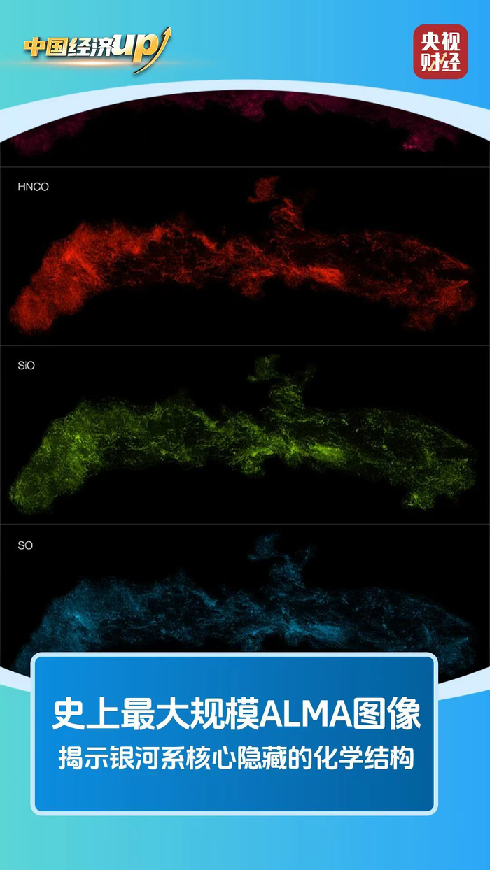 记者25日从中国科学院上海天文台获悉,我国科研人员参与的国际研究团队依托阿塔卡马大型毫米/亚毫米波阵列望远镜(ALMA),获得了最大规模的ALMA图像,揭示了银河系核心隐藏的化学结构。这一高质量数据集将使天文学家能够深入研究银河系中心的位于超大质量黑洞附近最极端环境下的恒星生命历程。