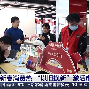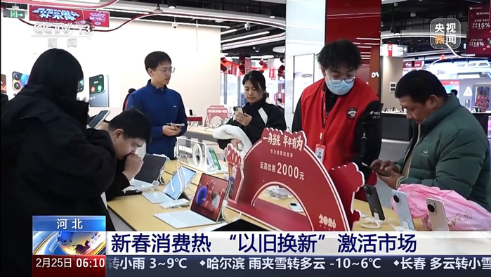 2月25日,央视新闻频道《河北:新春消费热 “以旧换新”激活市场》报道截图。