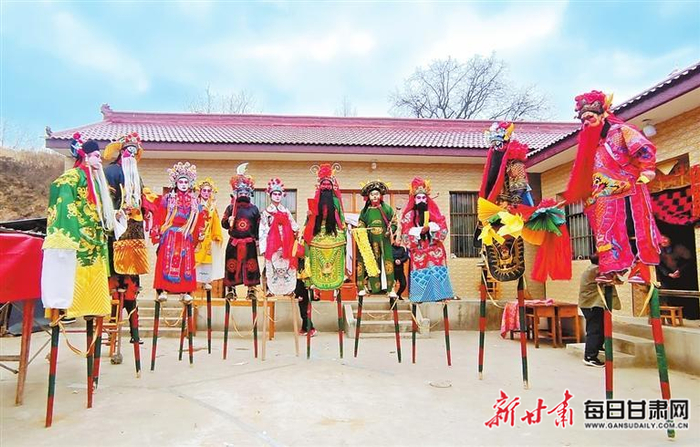 【图片新闻】清水县陇东镇赵峡村社火队员“踩高跷”