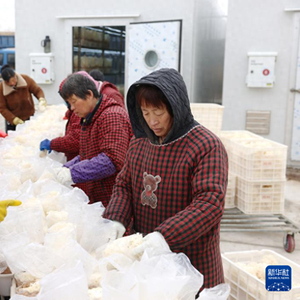 2月27日,河北省新河县众乐种植专业合作社工人在分拣包装绣球菌。 近年来,河北省邢台市新河县立足区域农业生产特色,把“工业化”理念引入农业生产,将金耳、绣球菌等珍稀食用菌搬进“5G智慧微工厂”,通过智能控制舱内温度、湿度、光照等,为食用菌生产创造最佳生长条件,实现全年不间断“订单式”生产。目前,新河县已建成“5G智慧微工厂”343座,单个微工厂年产值达50万元,菌菇年产量超千吨。 新华社记者 朱旭东 摄