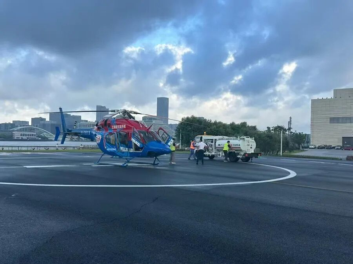 据介绍,为保障机场起降效率,直升机航班通常不直接降落在浦东机场。星野飞行基地位于浦东机场塔台管制区外,距离浦东机场航站楼不远,航线与机场方合作,由机场地面服务专车负责接驳,能让乘客15分钟实现“从直升机舱门到航站楼门”。