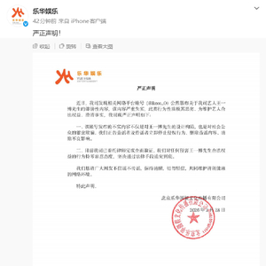 2月28日,乐华娱乐发布严正声明。声明指出,网络平台账号(@ikooo_O)发布的关于王一博的内容严重失实,公司已委托律师完成全面取证。