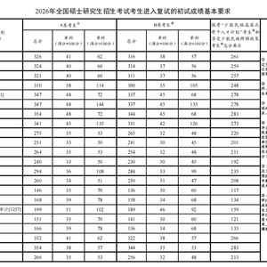 今天起,2026年全国硕士研究生招生考试初试成绩陆续可查。教育部发布《2026年全国硕士研究生招生考试考生进入复试的初试成绩基本要求》(国家分数线)。教育部要求各招生单位根据《2026年全国硕士研究生招生工作管理规定》,在国家分数线的基础上,自主确定并公布报考本单位的考生进入复试的初试成绩要求及其他学术要求。
