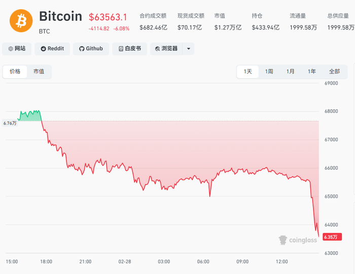 比特币直线跳水跌破64000美元,美官员:美国对伊朗的空袭正在进行中