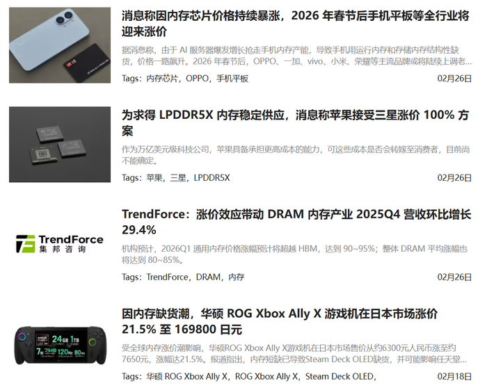 中低端机型之所以承压如此严重,核心是这类产品本就依靠走量盈利,成本已经压缩到极致,完全没有多余空间消化内存涨价带来的压力,想要维持运营就只能跟着涨价。