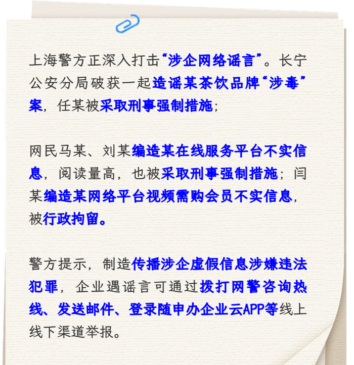 【提示】上海警方深入推进 “涉企网络谣言”打击整治