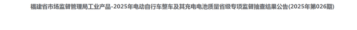 福建省市场监督管理局公布2025年电动自行车整车及其充电电池质量省级专项监督抽查结果(2025年第026期)