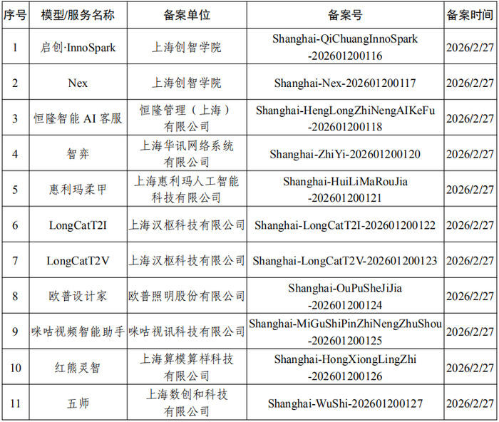 上海市新增11款已完成备案的生成式人工智能服务 证券时报网 证券时报官方账号 02.2817:33 关注 转自:证券时报人民财讯2月28日电,据上海市网信办消息,截至2月28日,上海市新增11款已完成备案的生成式人工智能服务,累计已完成149款生成式人工智能服务备案。