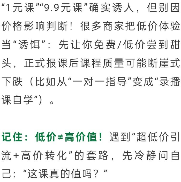 记住:理性消费≠冲动买单!这种“洗脑式推销”专盯犹豫的人。如果课程顾问一直催你买高价课,直接亮明态度:“我想先对比再决定”,别被话术绑架。