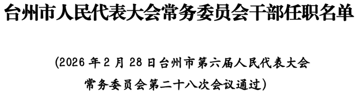 陈建斌为台州市第六届人民代表大会常务委员会代表资格审查委员会主任委员;