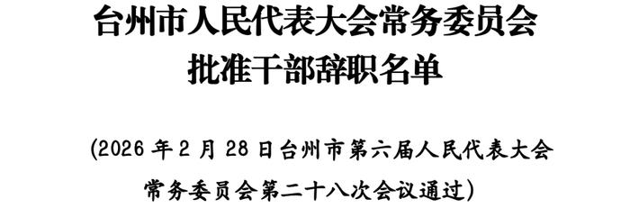 屈亚军辞去台州市椒江区人民检察院检察长职务;
