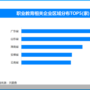 天眼查专业版数据显示,截至目前我国现存在业、存续状态的职业教育相关企业超1万家。从区域分布来看,广东省、山东省、湖南省职业教育相关企业数量位居前列,分别拥有超1100余家、950余家和840余家。