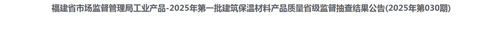 福建省市场监督管理局公布2025年第一批建筑保温材料产品质量省级监督抽查结果(2025年第030期)