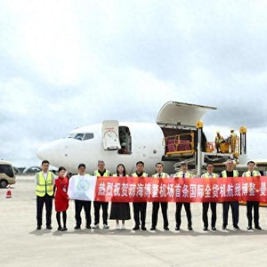 2月28日,琼海博鳌国际机场首条国际全货机航线博鳌-曼谷航线开航成功。琼海博鳌国际机场供图