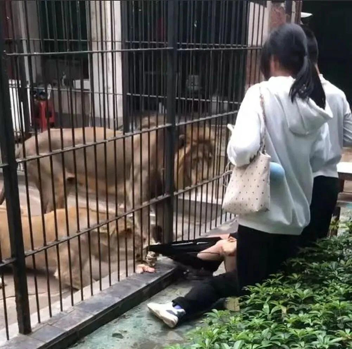 动物园狮子抓扯女童衣物