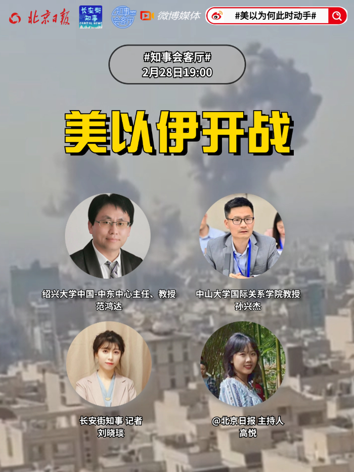 就在美以对伊朗发动袭击几天前,美伊第三轮间接谈判还被形容为“进展积极”,甚至约定3月初在维也纳继续技术磋商。美以为何选在此时开战?知事会客厅工作室邀请绍兴大学中国-中东中心主任、教授范鸿达和中山大学国际关系学院教授孙兴杰,一起深度解读中东局势。详情>>>