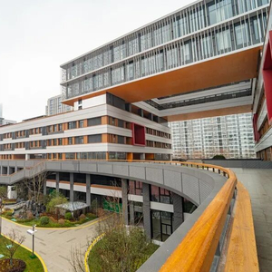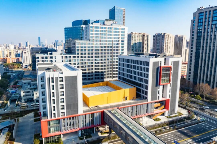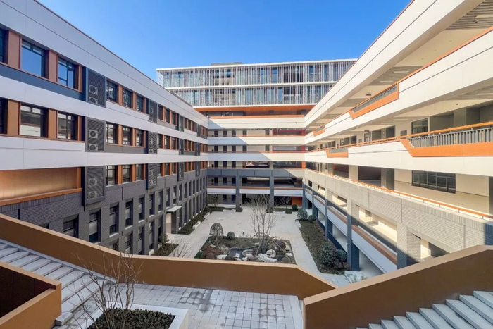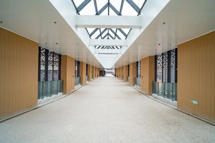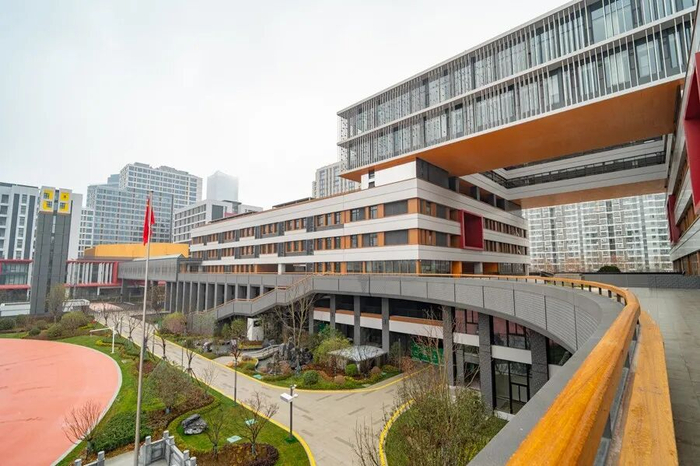 二十九中新校区总建设面积达12万平方米,校区整体分为A、B两个地块,通过空中连廊跨过新建的漓江路实现无缝衔接。其中,A地块内布局有教学实验楼、风雨操场与食堂、教学综合楼,B地块则设有学生宿舍、礼堂及国际交流中心,功能分区明确,满足教学、生活、交流等多元需求。