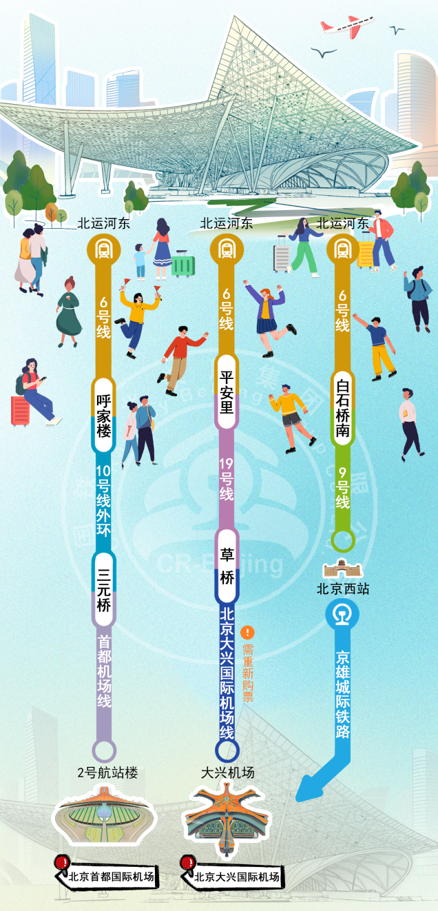 均可通过地铁相互换乘