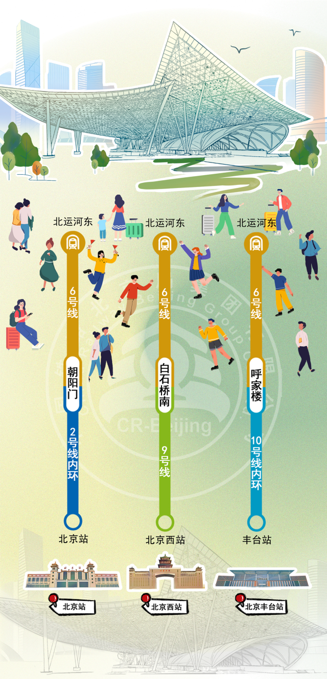 北京丰台站位于丰台区,于2022年6月20日开通运营,是国内首座采用高铁、普速双层车场重叠设计的特大型车站,形成了“顶层跑高铁、地面跑普速、地下跑地铁”的立体交通模式。