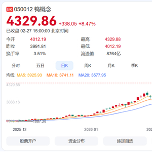 自2025年以来,钨粉价格一路上行。市场三方数据统计,截至2月25日,钨粉价格已突破1800元/kg,较去年初上涨469.6%,较今年初上涨66.7%。受此带动,资本市场钨概念股表现强势,年初至今板块涨幅已达89.19%。