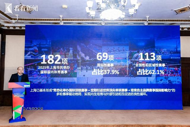 《2025上海市体育赛事影响力评估报告》,正式发布。2025年,上海举办的182项国际国内体育赛事,创造直接经济影响135亿元、拉动效应358亿元。