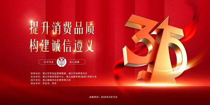 作为系列活动的重要环节,3月15日当天将在遵义融媒传媒集团演播厅举行“提升消费品质·构建诚信遵义”——2026遵义市3·15主题直播活动,并通过电视、广播、抖音、视频号等多平台同步直播。
