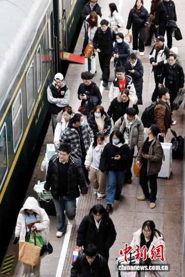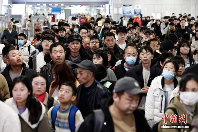 3月1日,记者从中国铁路上海局集团有限公司获悉,当日,长三角铁路春运客流仍保持高位运行,预计发送旅客298万人次。同时,铁路部门将加大重点方向运力投放,计划3月1日增开旅客列车204列,扩编动车组列车190列,其中直通旅客列车134列,主要为东北、云贵、川渝、西北、湖南、湖北、河南等地区前往长三角主要城市的长途客流。图为旅客从铁路上海站出行。中新社记者 殷立勤 摄