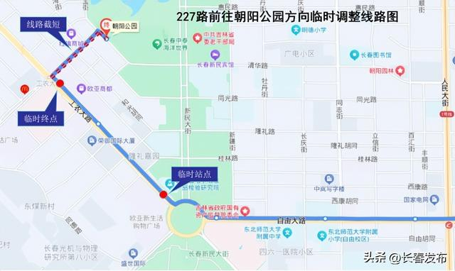(七)227路前往朝阳公园方向缩短至省医院,前往东环城路方向调整至工农大路。