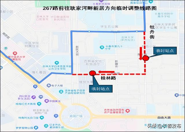 (三)267路前往耿家河畔新居方向调整为牡丹街-桂林路,前往般若寺方向保持原有通行路线。