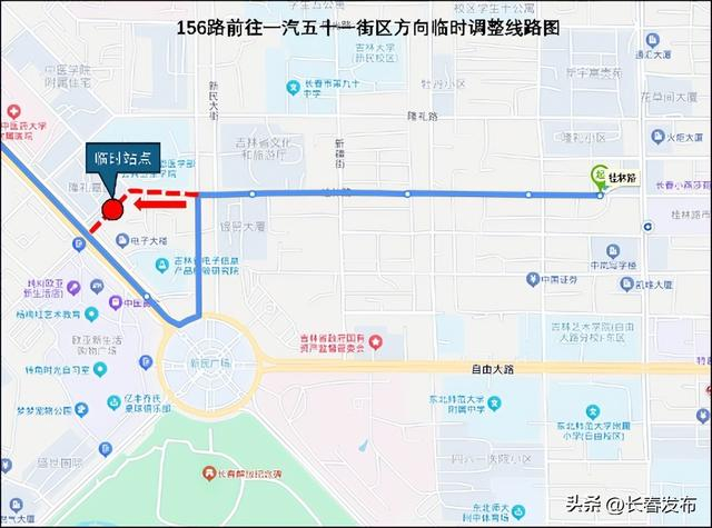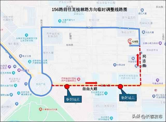 (二)156路前往桂林路方向调整为同志街-自由大路;前往一汽五十一街区方向调整为桂林路直行。
