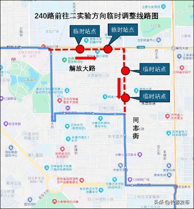 (六)240路前往二实验方向调整为解放大路-同志街;前往电车公司方向调整为同志街-解放大路。