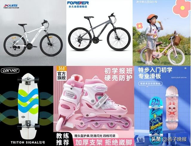 不止于体育运动装备,学生群体对户外兴趣装备同样爱不释手,也是家长热衷为孩子挑选的课余放松好物。喜德盛黑客350山地车,铝合金车架轻盈,护盘设计防止裤脚卷入车链更安全;永久青少年自行车,减震好、换挡灵,学生代步稳健;迪卡侬EXPL50山地车,双色刹车设计帮孩子快速记忆,低跨度车架骑行更舒适;Carver陆地冲浪板,镜面色彩叠加设计潮酷吸睛,新手老手都合适;361°儿童轮滑鞋多重锁扣更安全,尺码可调更耐用;特步儿童双翘板滑行稳定易学,双面彩绘个性亮眼。
