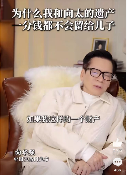 近日,向华强在社交账号上发布视频称,名下财产不会直接分给两个儿子,而是全部放进家族信托基金。