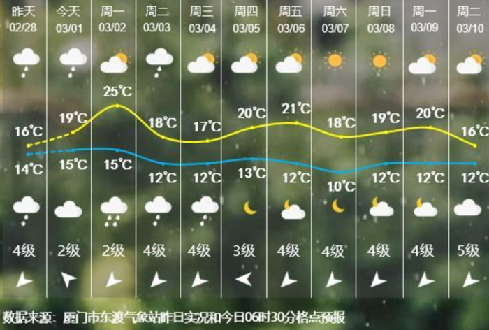 厦门本站最低气温仅14.9℃
