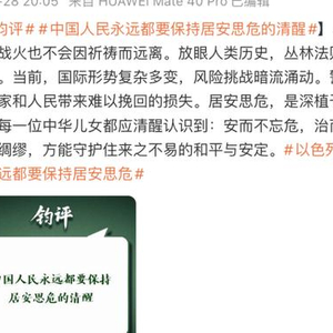 2月28日,钧正平工作室官方微博发布评论《中国人民永远都要保持居安思危的清醒》: